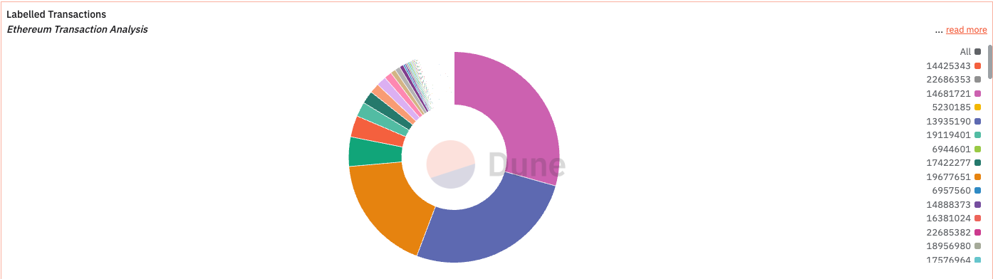 The above chart shows block level representation of the query that was executed. The visualization is auto-created and native to the dune app.