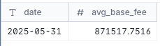 The above query reads through the data and returns the average of gas fees paid on a particular date.